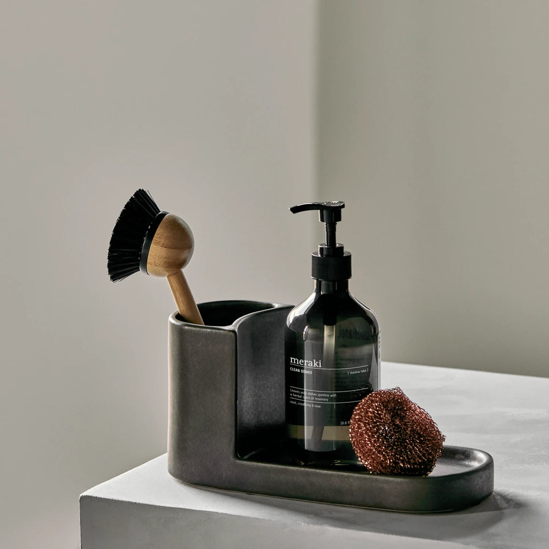 Dieser dunkelgraue Keramikhalter hält Spülbürste und Spülmittel ordentlich und griffbereit. Das schlichte Steingut-Design verleiht Ihrer Küche oder Ihrem Hauswirtschaftsraum dezente Eleganz und macht aus einer einfachen Routine ein ruhiges, angenehmes Ritual.