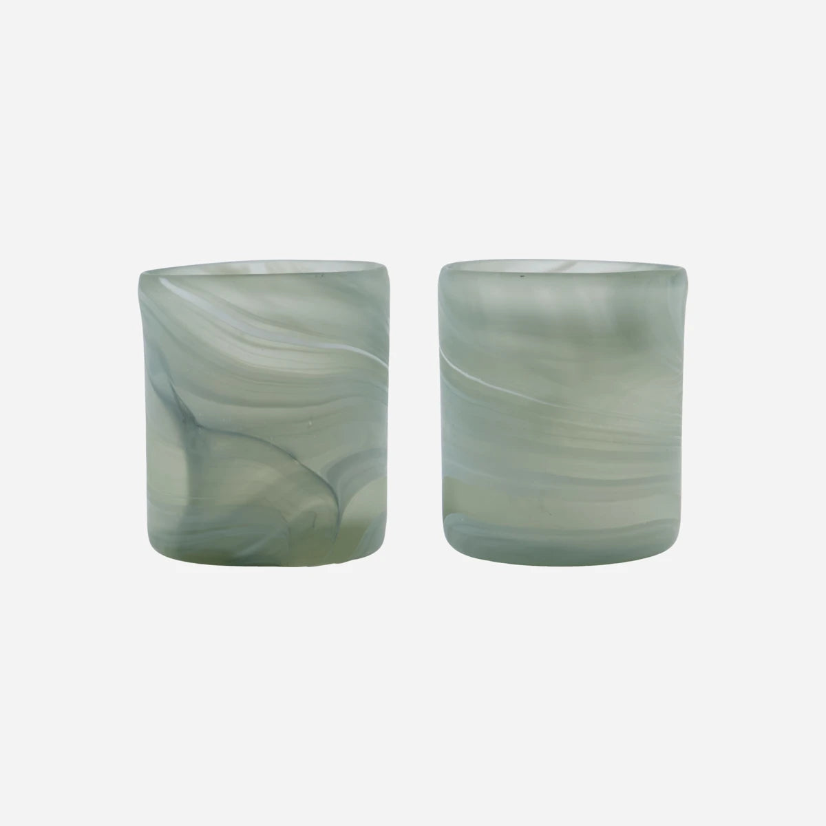 Mit diesem Set aus zwei mundgeblasenen Teelichthaltern aus Glas verleihen Sie Ihrem Zuhause Eleganz und sanftes, einladendes Licht. Das grau marmorierte Muster und das dezente Design machen jedes Stück einzigartig und schaffen eine stimmungsvolle Atmosphäre in Ihrem Wohnzimmer, Essbereich oder Badezimmer. Kombinieren Sie die beiden Teelichthalter einzeln oder in Kombination, um die Stimmung zu variieren, und lassen Sie das zarte Leuchten Ihren persönlichen Einrichtungsstil unterstreichen.